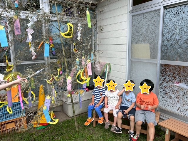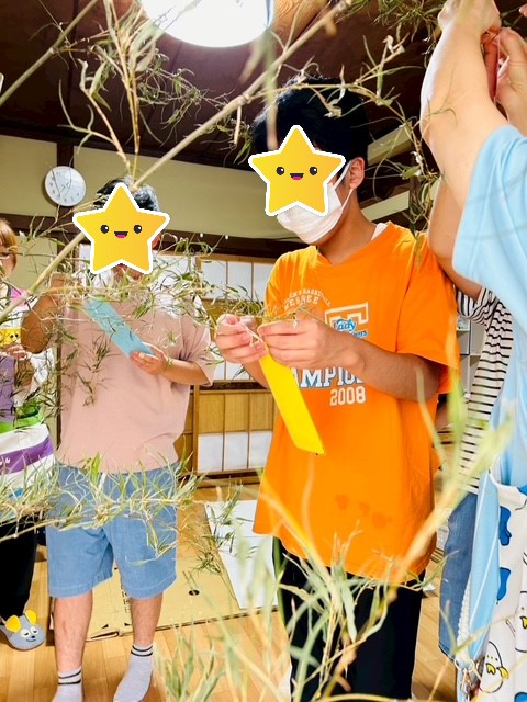 七夕飾り☆彡 七月七日 七夕の日 短冊に願い事を書き、みんなで笹に飾り付けをしました💫 思い思いの願いをこめて、短冊をしっかり笹に結びます🙏🏻 最後は、ゆず、みかん、れもんで記念撮影📷✨ みんなの願い事が叶いますように!