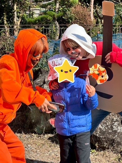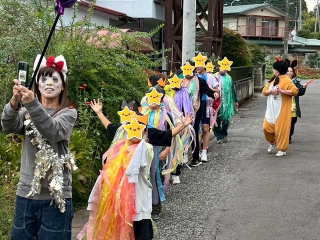 COCOゆずハロウィン2025🎃 今年もCOCOゆずの本気のハロウィンがやってきました! 今年は職員の仮装を紹介します😅 先ずは…… A先生のカボチャおばけ Y先生のぷーさん K先生のドナルド H先生のキティちゃん H先生のジジ M先生のサリー 子どもたちに負けじと、職員も本気で仮装しました! もちろん、学校へのお迎えもこれで(笑) さぁ!お菓子をもらいに行くぞ~!!!!! 「トリックオアトリート!!!!!!」 今年も無事に子どもたちを悪霊から守ることができました👻